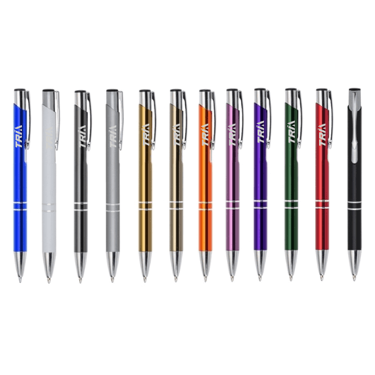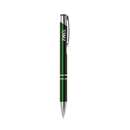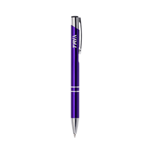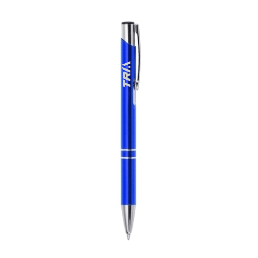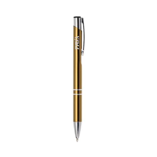 Descrição: Caneta metálica com carga esferográfica azul e acionamento por clique.