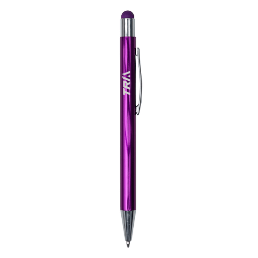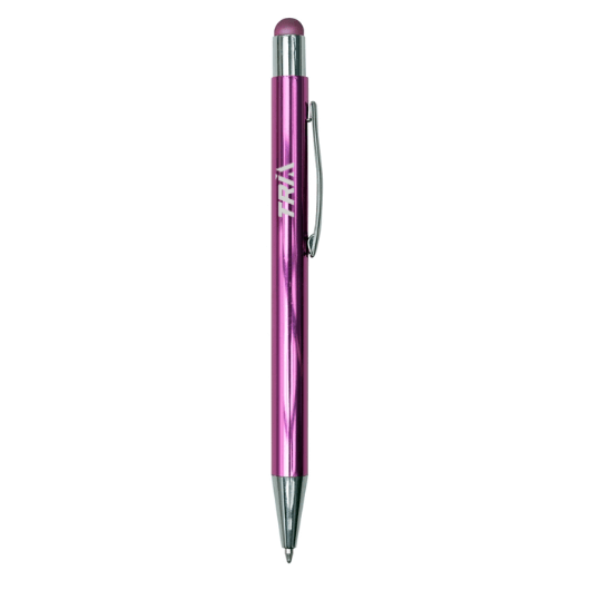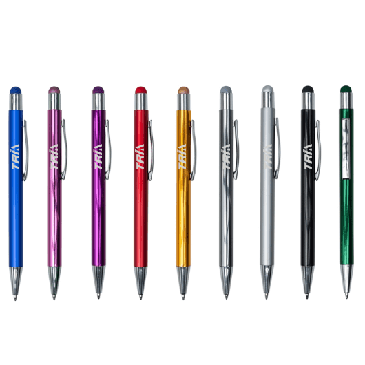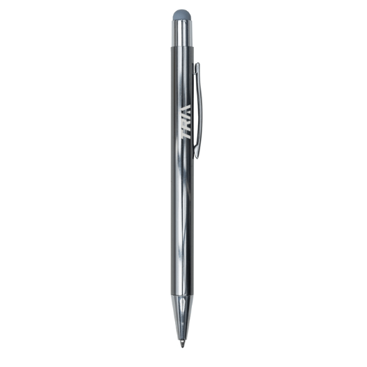 Descrição: Caneta metálica com touch screen, carga esferográfica azul e acionamento por clique.