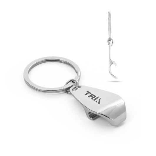 Descrição: Chaveiro em metal com abridor de garrafas. 22 x 42 x 9 mm.