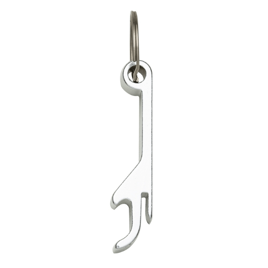 Descrição: Chaveiro abridor de metal formato “pé de galinha”.