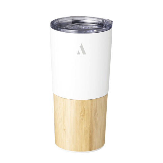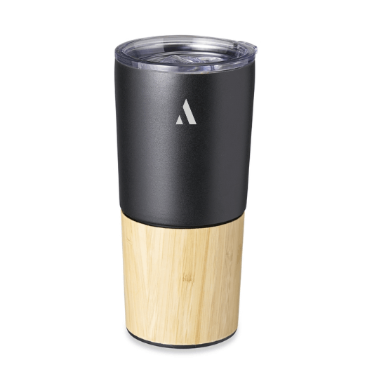 Descrição: Copo térmico de inox 600ml com parede dupla e detalhe de bambu. Tampa com acesso ao bocal e trava de segurança.