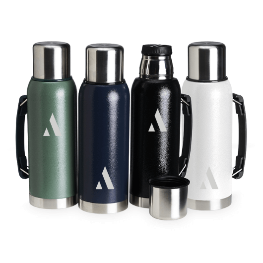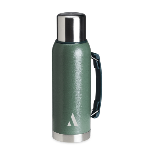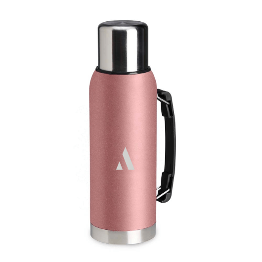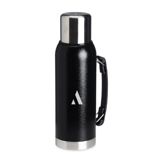 Descrição: Garrafa térmica de inox livre de BPA com capacidade de 1 litro. Contém alça para transporte.