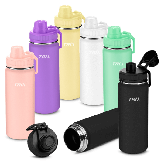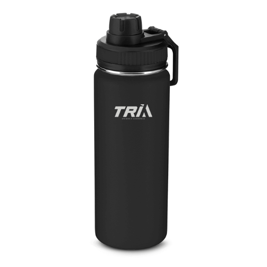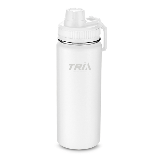 Descrição: Garrafa térmica em inox com parede dupla com capacidade de até 570 ml. Tampa rosqueável, alça de plástico e anel de silicone para vedação. Pintura eletrostática.