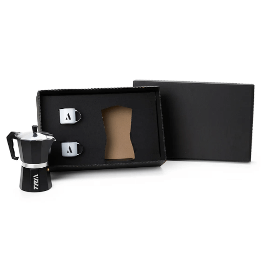 Descrição: Esse kit conta com cafeteira modelo Italiana em alumínio de alta qualidade e resistência. Toda sua estrutura é desmontável e alça para garantir a segurança durante o seu uso e conta também com duas canecas em alumínio branco.
