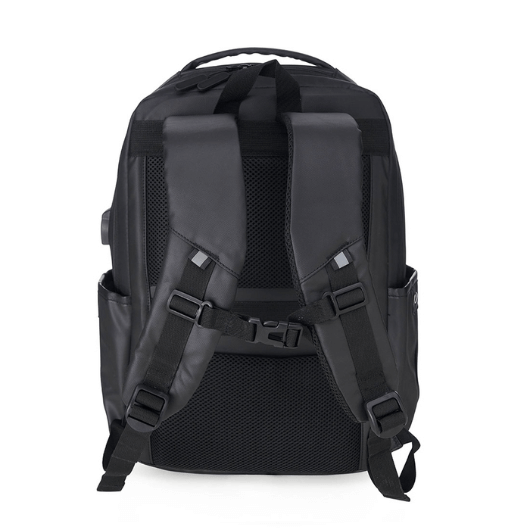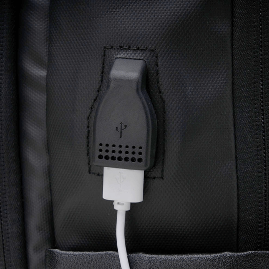 Descrição: Mochila em couro sintético 20 litros resistente à água com quatro compartimentos, sendo o principal com bolso para notebook até 14 e um exclusivo com proteção contra furto. Com divisórias internas para acessórios, a mochila possui bolsos laterais, suporte externo usb, duas alças de mãos, alça para encaixe em malas de viagem e área costada com revestimento espumado.